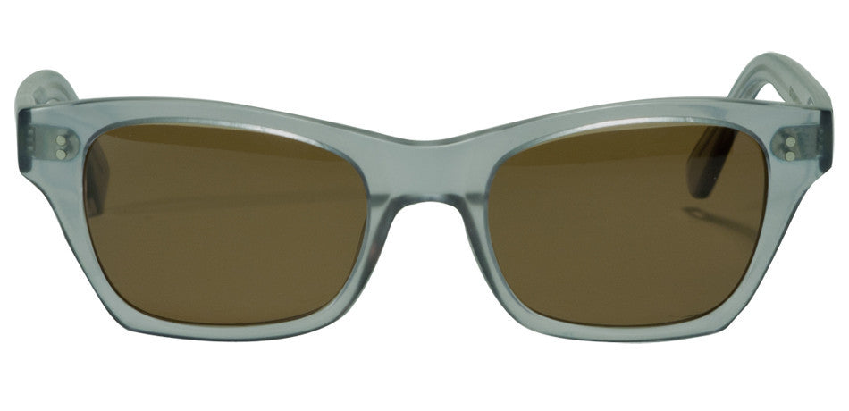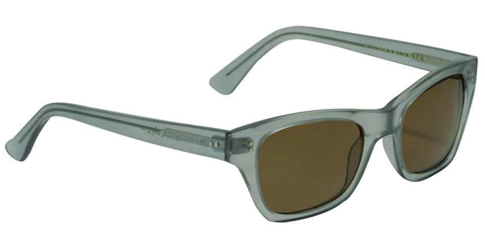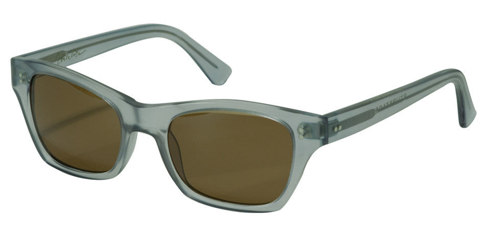 Frames are milled from sheets of cellulose acetate, constructed with two thru-rivets per attachment point and a high-nickel-content hinge for strength.